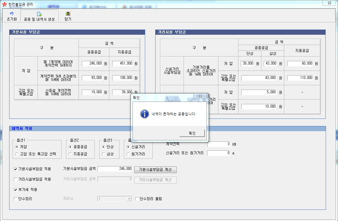 예) 기본 가공 계약전력 저압 240'000원인데 현재 246'000원 입니다