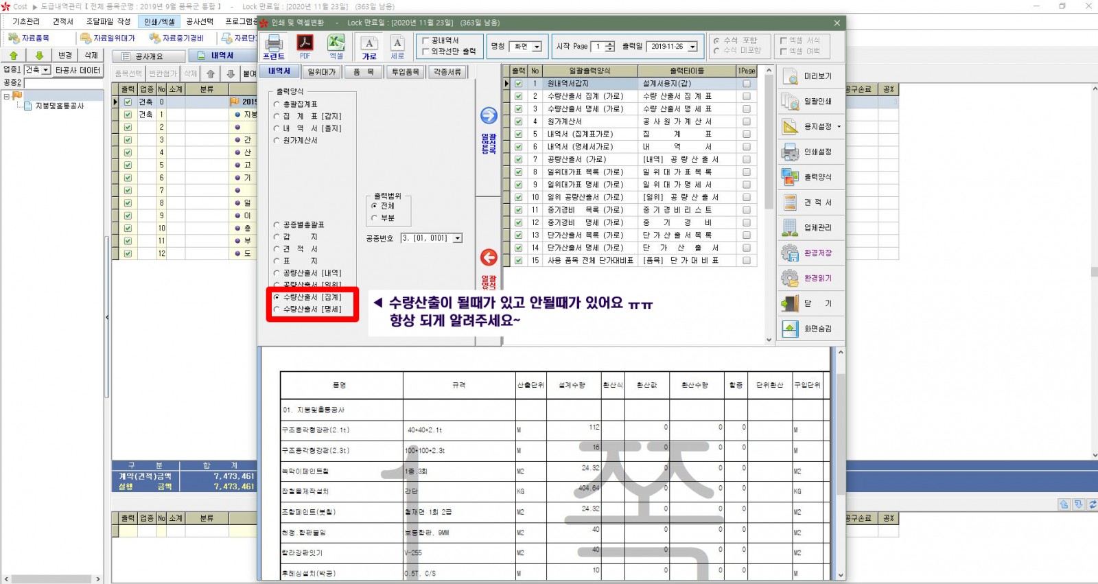 코스트X 사용하다가 S로 변경해서 사용하는데 코스트S에는 인쇄및엑셀변환시에 수량산출서가 없어졌네요ㅠㅠㅠ