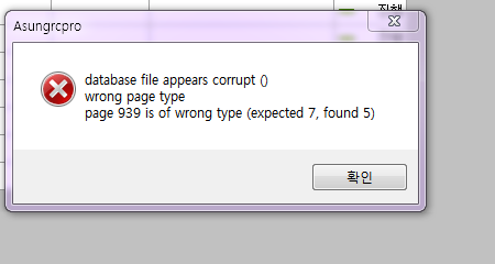 골조적산 프로그램에서 공사 들어갈때 오류창이 뜨면서 안들어가지는 현상 문의 드립니다.